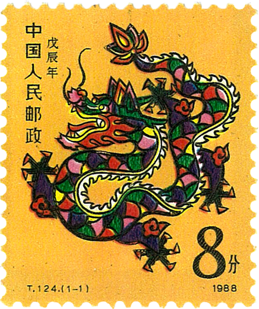 本套邮票上的龙不以雄姿惊人,不以威猛慑人,而以亲切、活泼取胜,设计者综合了木版年画、剪纸、刺绣等几种民间艺术的特长,使笔下的龙色彩绚丽,雅致可爱。
