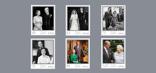 名称:泽西岛11月3日发行女王白金结婚纪念日邮票