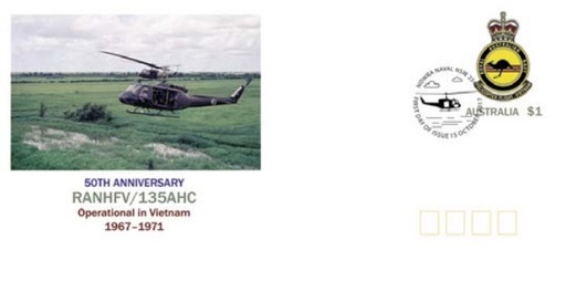 澳大利亚10月15日发行135AHC直升机在越战使用50周年纪念封