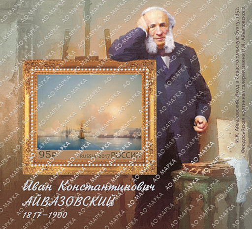 俄罗斯10月10日发行伊凡·康斯坦丁诺维奇·艾瓦佐夫斯基诞辰200周年小型张