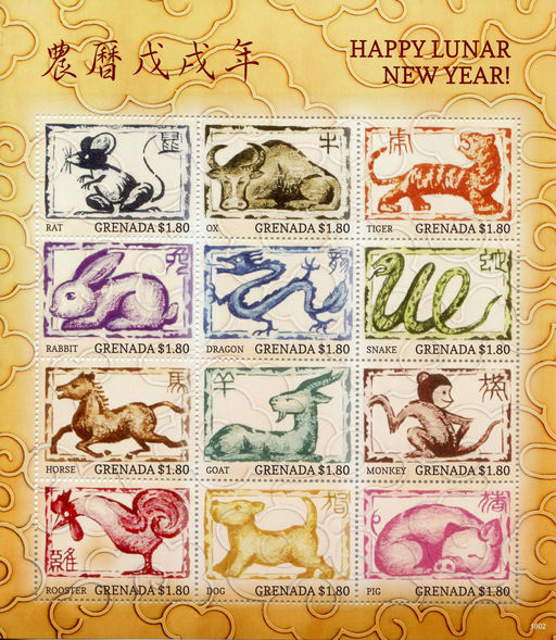 名称:格林纳达发行的农历戊戌年十二生肖小全张