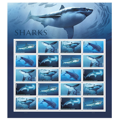 美国7月26日发行鲨鱼邮票