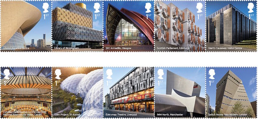 建筑分别为:伦敦伊丽莎白女王奥林匹克公园水上运动中心; 伯明翰图书馆 克莱德礼堂,格拉斯哥 - 现在被称为SEC犰狳; 苏格兰议会大厦,爱丁堡*; 北爱尔兰安特里姆巨人铜锣湾游客中心;威尔士国民议会卡迪夫* Eden Project,St Austell,Cornwall *; 每个人剧院,利物浦; 帝国战争博物馆北,曼彻斯特; 伦敦伊丽莎白女王奥林匹克公园水上运动中心; 开关屋,泰特现代,伦敦。