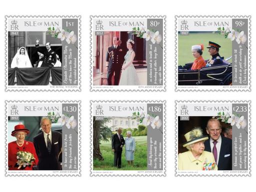 马恩岛7月9日发行女王陛下和菲利普亲王白金周年邮票