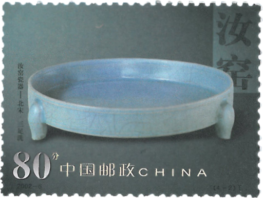 这套邮票画面选取的是珍藏于北京故宫博物院的北宋晚期的汝官窑瓷器的代表作,集中展示了汝瓷鼎盛时期的艺术成就。汝窑为宋代五大名窑之一,它与钧、官、哥、定窑齐名,且有“汝窑为魁”的评价。汝窑因地处河南汝州而得名,通常所说的汝窑主要指为皇家生产贡品的汝官窑,产品不多,上品多被皇室垄断,历来被视为稀世珍宝。汝瓷造型优美,工艺考究,风格古朴典雅,胎骨坯坚质细,品类以宫廷艺术观赏瓷、文房四宝以及少量的生活日用瓷为主。釉色多为天青色,由于御品中掺入了玛瑙粉末,更显得釉质细腻,光泽晶莹。汝窑还独创了具有特殊丰韵的印花青瓷。此套邮票在印制中攻克了工艺难关,成功地将汝瓷上的“开片”逼真地再现于方寸。