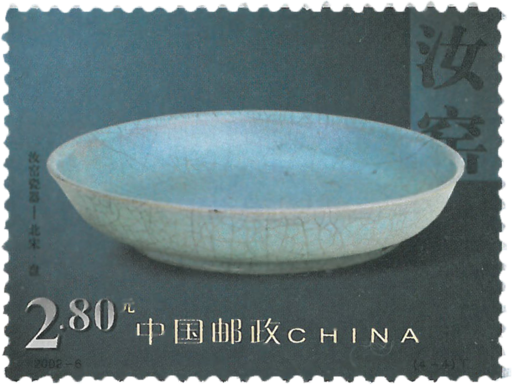 这套邮票画面选取的是珍藏于北京故宫博物院的北宋晚期的汝官窑瓷器的代表作,集中展示了汝瓷鼎盛时期的艺术成就。汝窑为宋代五大名窑之一,它与钧、官、哥、定窑齐名,且有“汝窑为魁”的评价。汝窑因地处河南汝州而得名,通常所说的汝窑主要指为皇家生产贡品的汝官窑,产品不多,上品多被皇室垄断,历来被视为稀世珍宝。汝瓷造型优美,工艺考究,风格古朴典雅,胎骨坯坚质细,品类以宫廷艺术观赏瓷、文房四宝以及少量的生活日用瓷为主。釉色多为天青色,由于御品中掺入了玛瑙粉末,更显得釉质细腻,光泽晶莹。汝窑还独创了具有特殊丰韵的印花青瓷。此套邮票在印制中攻克了工艺难关,成功地将汝瓷上的“开片”逼真地再现于方寸。