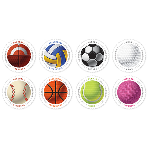 美国6月14日发行有球邮票