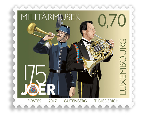 名称:卢森堡5月9日发行大公军乐团175周年邮票