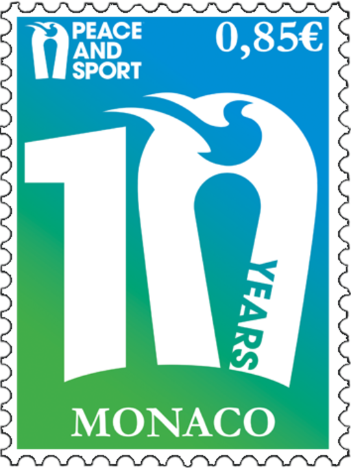 摩纳哥5月9日发行和平与体育10周年邮票