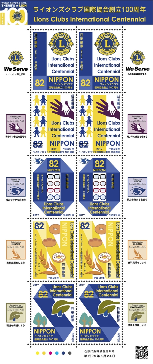 名称:日本5月24日发行国际狮子会100周年邮票