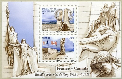 法国4月8日与加拿大联合发行维米岭战役百年小全张