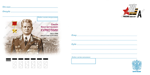 名称:俄罗斯3月23日发行伟大的卫国战争胜利75周年谢苗·康斯坦丁诺维奇·库尔科特金元帅邮资封