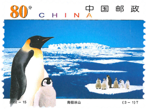 2002年7月15日至26日,第27届南极研究科学委员会大会和第14届国家南极局局长理事会在中国上海举行。这是南极科学界的高层次国际性会议。为此,国家邮政局发行了一套3枚《南极风光》邮票。邮票图案分别是南极冰山、南极极光和南极格罗夫山。南极洲位于地球的最南端,1400万平方公里的南极大陆有98%被永久性的冰雪覆盖。在南极周围的海洋中漂浮着上万座冰山,被称作“移动的岛屿”;在冬季,虽然没有阳光,但漫天绚丽极光却是它的一个非常美丽的景观;格罗夫山位于南极内陆冰盖处,由一大群散布的山峰和冰原岛峰组成,这里一直是南极探险者和科学家十分关注的区域。南极因其独特的地理环境被科学家称作"解开地球奥秘的钥匙"、"天然科学实验圣地"。中国已经成功地组织了18次南极科学考察活动,是《南极条约》协商国之一,并加入了南极研究科学委员会。