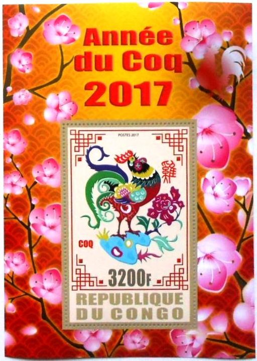 刚果2017年鸡年小型张