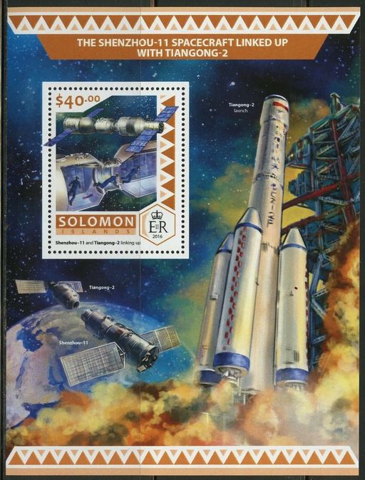 名称:所罗门群岛2016年发行的天宫二号与神舟十一号小型张