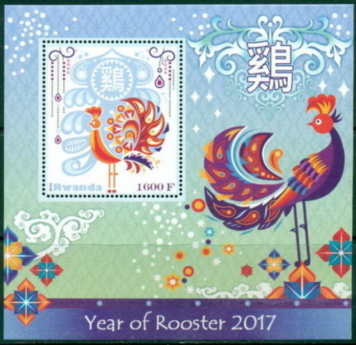 名称:卢旺达发行的2017鸡年小型张和小全张