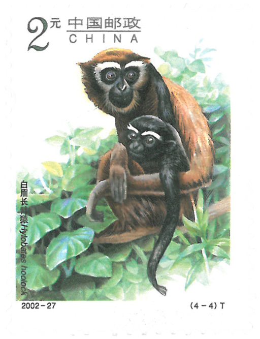 长臂猿属灵长目、长臂猿科,计有9种,主要分布于东南亚。长臂猿没有尾巴和颊囊,是小型的类人猿,它们是典型的树栖动物,常年栖息在热带、亚热带的雨林中。长臂猿是"国中之宝",它们不但样子像人,就连生理结构和病态也很像人,是最理想的医学实验动物,也是动物学、心理学、人类学和社会科学的重要研究对象。我国有4种长臂猿:白眉长臂猿,成年雄性全身黑色,却长着两撇白色的眉毛,好像长臂猿中的寿星;雌性体毛则为铜棕色.眉毛略显苍白。白掌长臂猿的手掌、脚掌全为白色,脸庞周围环绕着白色银圈;体毛的颜色从乳白到黑色,从深棕到红色。黑长臂猿,雄猿通体黑色,头顶部的毛向上生长,形似黑冠;成年雌猿灰棕黄色,头顶部黑褐色。自颊长臂猿,体形细长,肩宽臀小。直立时两手可触地。与黑长臂猿的最大区别是雄猿两颊有明显的白色块斑,体仍为黑色。头顶有尖形冠毛。雌性幼体为黑色,成年后为灰黄色或金黄色,头顶也有黑色毛冠。它们均为国家1级保护动物。