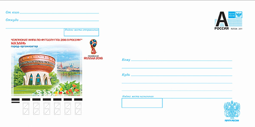 名称:俄罗斯9月26日2018俄罗斯世界杯-喀山邮资封