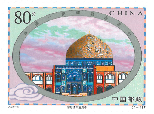 这套邮票由中国与伊朗联合发行。中国钟楼图案选用了陕西省西安市内的钟楼,该钟楼始建于明洪武十七年(1384年),明万历十年(1582年)移址重修,现为全国重点文物保护单位。伊朗清真寺图案选用的是伊朗伊斯法罕清真寺。