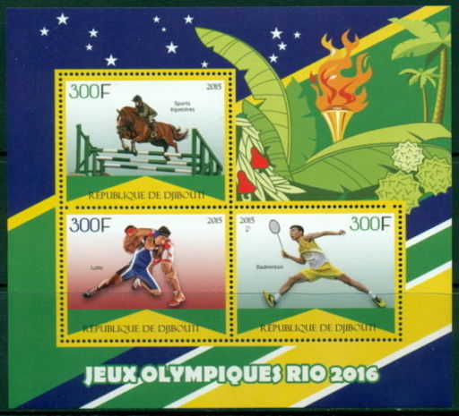 吉布提7月23日发行2016里约奥运会2邮票和小型张
