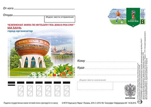 名称:俄罗斯7月27日发行FIFA世界杯™2018俄罗斯 - 喀山纪念邮资片