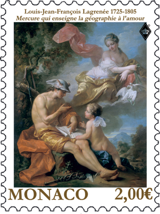 邮票中绘画为Louis-Jean François Lagrenée l’aîné (1725-1805)绘制