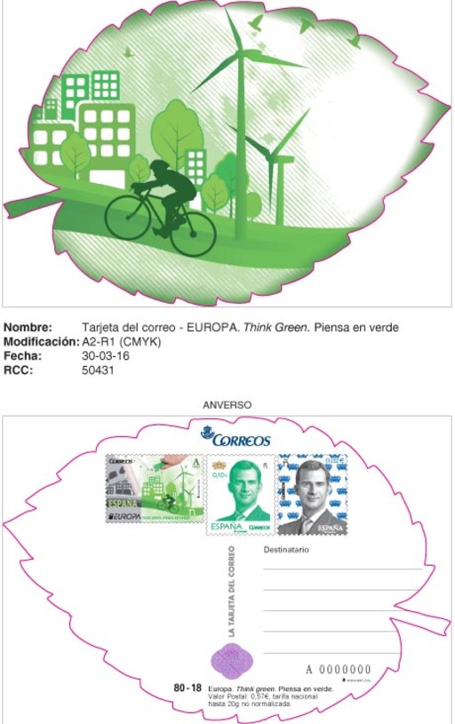 名称:西班牙4月22日发行欧罗巴2016绿色畅想邮资片