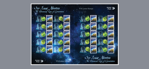 泽西岛4月1日发行艾萨克·牛顿纪念个性化小版张