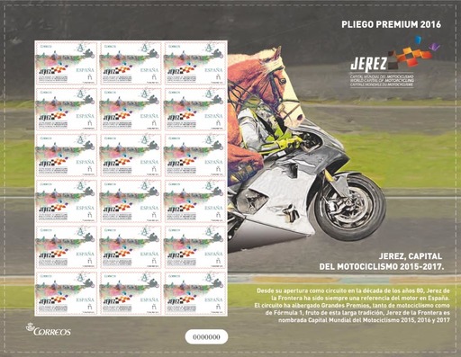 名称:西班牙3月29日发行赫雷斯2015-2017世界摩托车赛不干胶邮票