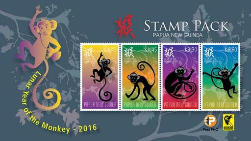 名称:巴布亚新几内亚3月30日发行猴年邮票