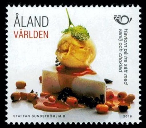 名称:奥兰群岛3月18日北欧邮政联盟2016主题北欧美食-沙棘邮票