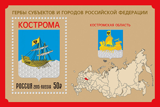 俄罗斯11月5日发行俄罗斯联邦城市徽章系列-科斯特罗马地区邮票