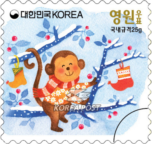 名称:韩国12月1日发行猴年邮票