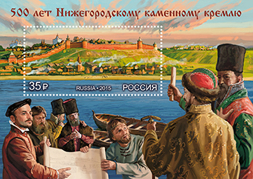 名称:俄罗斯8月28日发行下诺夫哥罗德克里姆林宫500年小型张