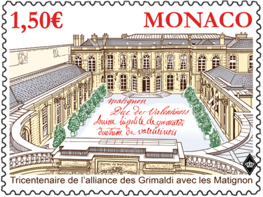 名称:摩纳哥9月3日发行格里马尔迪与马蒂尼翁联盟300年邮票