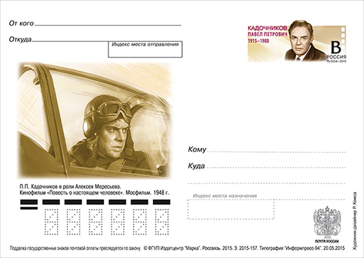 俄罗斯7月14日发行帕维尔·彼得罗维奇·卡多奇尼科夫诞辰百年纪念邮资片