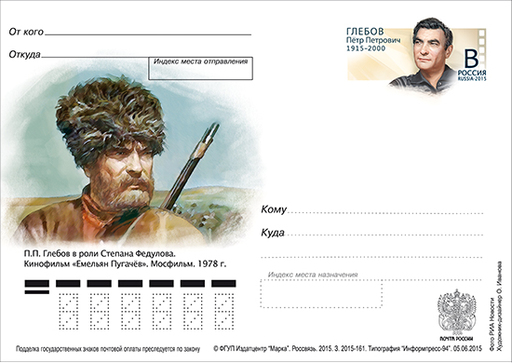 俄罗斯6月25日发行彼得·彼得罗维奇·格列博夫诞辰100周年邮资片