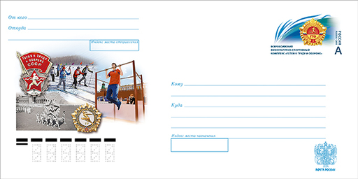 名称:俄罗斯6月20日发行俄罗斯体育标准“准备劳动与国防”(TRP)纪念邮资封
