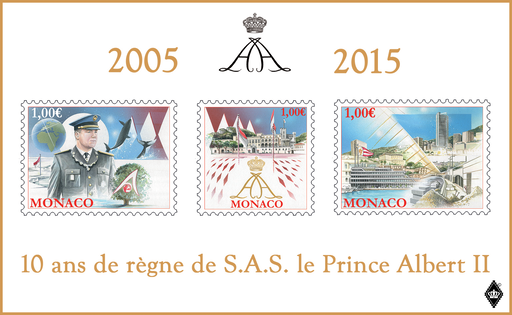 名称:摩纳哥7月11日发行阿尔贝二世亲王执政10周年小全张