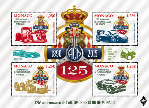 名称:摩纳哥6月25日发行汽车俱乐部125周年邮票
