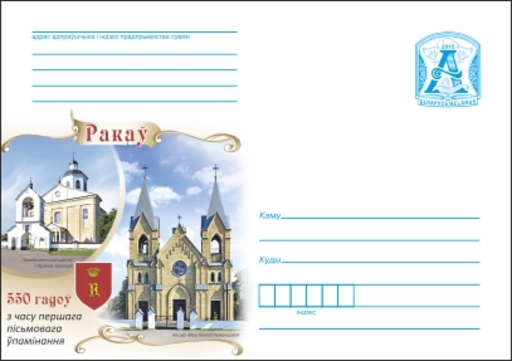 名称:白俄罗斯5月12日发行书面记载Ракова 550周年邮资封