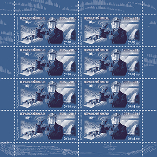 名称:俄罗斯6月2日发行诺里尔斯克镍矿80周年邮票