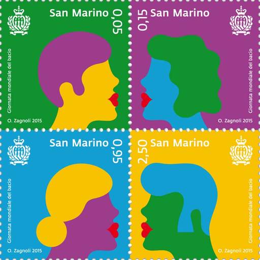名称:圣马力诺6月16日发行世界接吻日邮票
