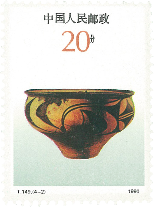 彩陶是指带有彩色文饰的陶器,其基本特点是陶质细腻,陶坯磨光着彩,在摄氏一千度左右的高温窑里烧成。纹饰以黑彩为主,兼用红彩或白彩,本套邮票所选用的四个类型是最具典型特征的彩陶。