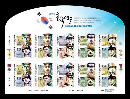 韩国6月1日增加发行6.25战争纪念护国英雄邮票