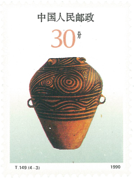彩陶是指带有彩色文饰的陶器,其基本特点是陶质细腻,陶坯磨光着彩,在摄氏一千度左右的高温窑里烧成。纹饰以黑彩为主,兼用红彩或白彩,本套邮票所选用的四个类型是最具典型特征的彩陶。