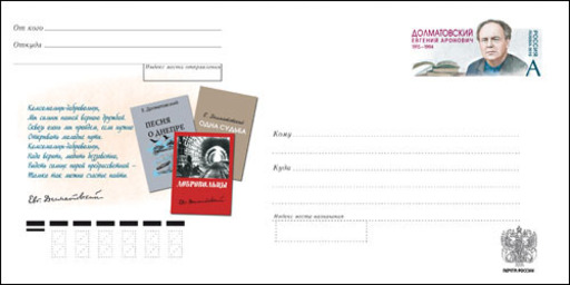 名称:俄罗斯4月21日发行叶甫根尼·阿龙诺维奇·多尔马托夫斯基诞辰100周年纪念邮资封