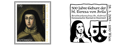名称:奥地利3月28日发行阿维拉的特蕾莎(圣女大德兰)诞辰500周年邮票