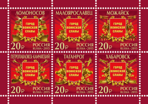 名称:俄罗斯2月24日发行城市军事荣耀系列6邮票