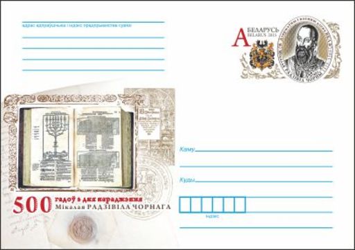 名称:白俄罗斯1月26日发行尼古拉斯·拉齐维尔·乔内尔诞辰500周年纪念邮资封